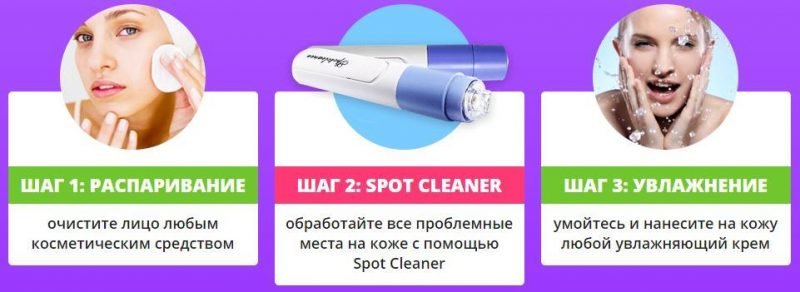 С приборчиком Spot Cleaner очень легко очищать все лицо от прыщей, камедонов, черных точек. Особенно в области над верхней губой - там выдавливать прыщи категорически нельзя. Прибор вычищает все на ура. Пользовалась в первое время каждый день, теперь - раз в три дня. Хорошо предварительно распарить кожу. Больше к косметологу не хожу.