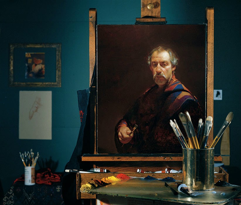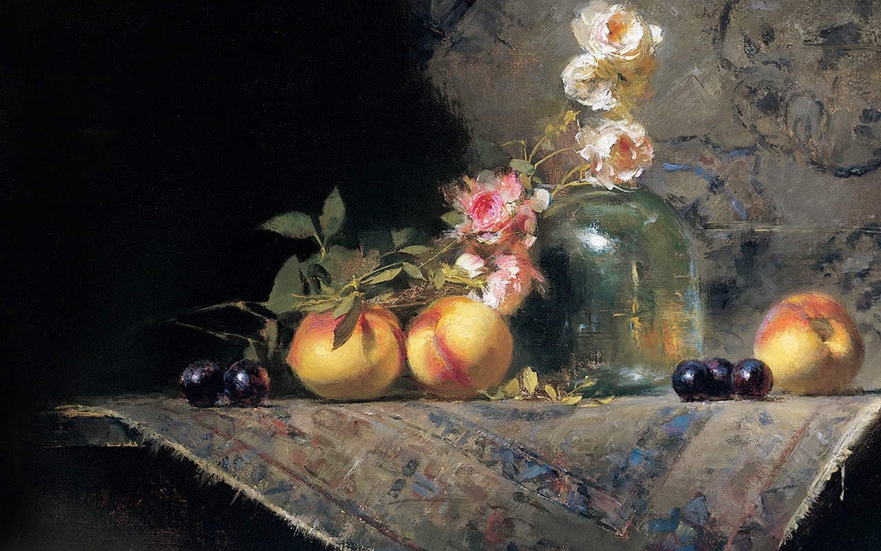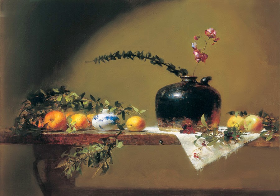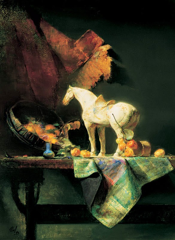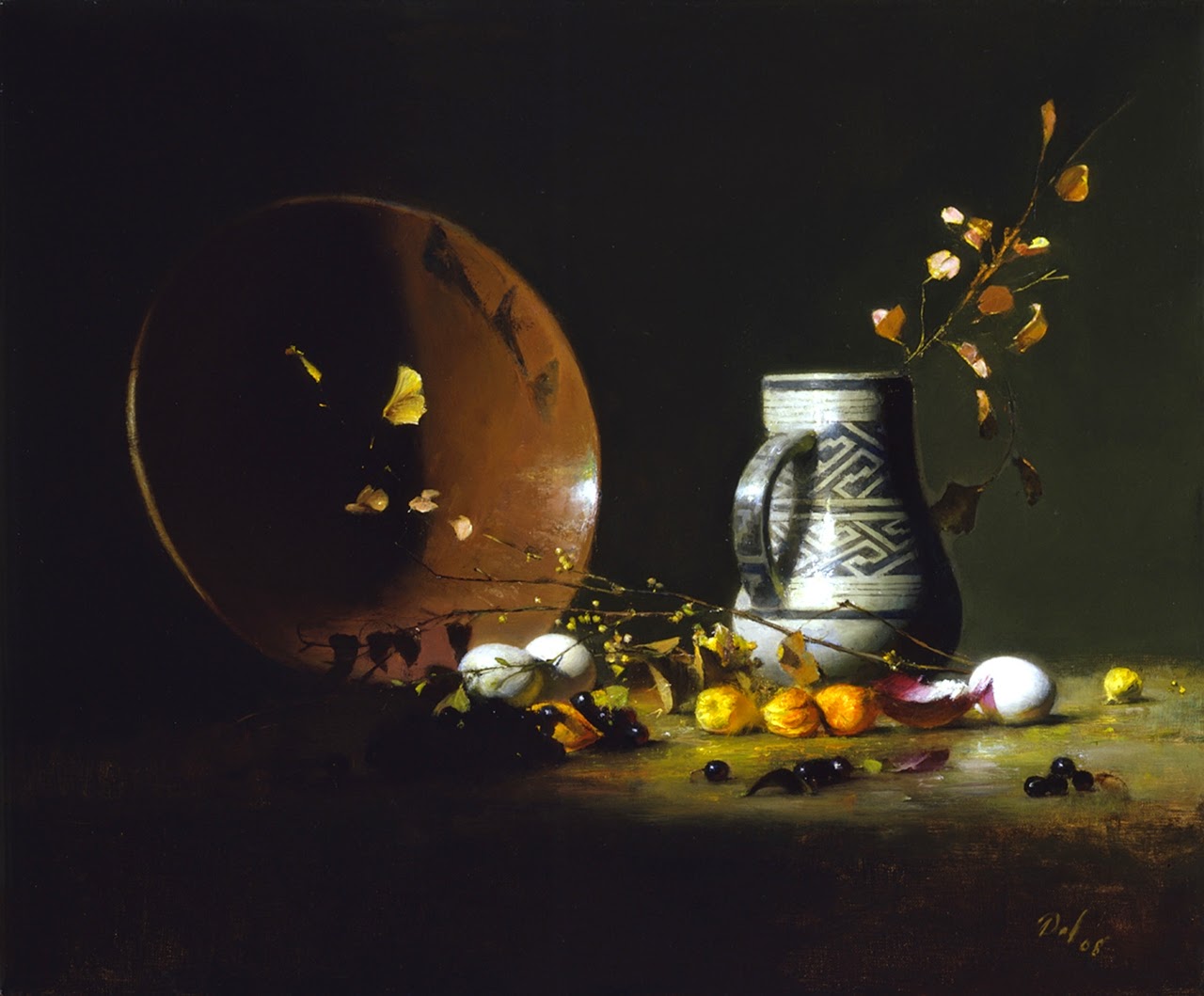 David A. Leffel is a twentieth-century artist who paints in the classic Flemish/Dutch old master style, much in the manner of Rembrandt or Chardin. His subject matter is Still Lifes, Landscapes, Portraits and figures, but the real subject of his work is the light as it gently drifts from one object to another. It pauses here, then moves on.