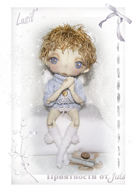 Помню и то, как создавался мой первый ангелок - Люсиль. Я до часу ночи рисовала её, а потом весь день вырезала, шила, вышивала, одевала, продумывала каждую детальку - трусики, носочки, блокнотик. И она появилась и увидела мир голубыми глазёнками))
