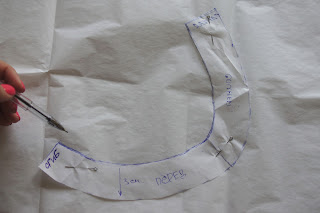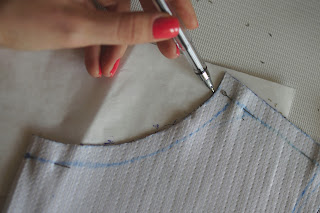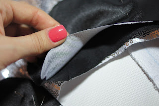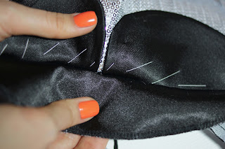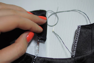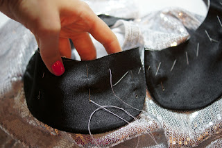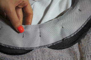 Скалываем булавками и смётываем обтачку.