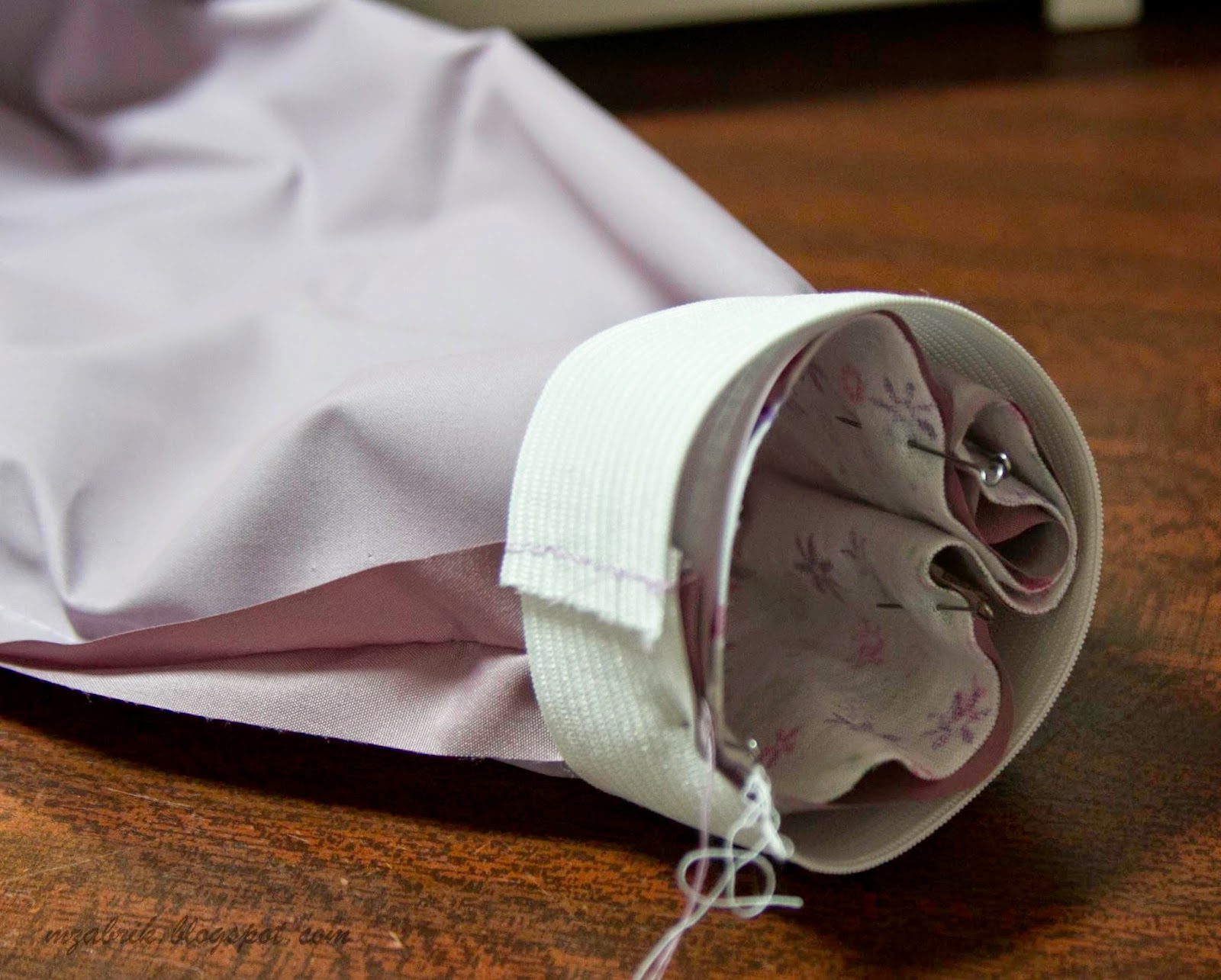Первый: отмерить ленту нужной длины, сшить в кольцо и пристрочить к низу брюк. Я так делала на первой штанине, мне этот вариант не очень нравится, т.к. лента немного тянется и угадать с точной длиной ленты непросто.