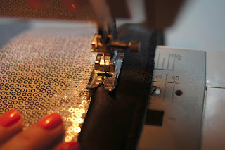 Остается загнуть ленту вовнутрь и проложить строчку по краю ленты.