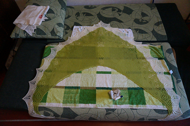 Вопрос, который возник во время блокировки шали: получается шаль нужно после каждой стирки блокировать? Или достаточно просто расправить? И еще после блокировки ажурной шали день, наверное, на третий я заметила что эффект от блокировки уменьшился. Это нормально, или я что-то не так сделала? Блокировала я следующим образом: постирала со смягчителем, отжала полотенцем, растянула.
