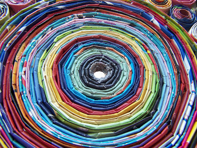 Сначала нарываем аккуратненько странички журналов на полосочки( фиксируя концы клеем) , которые потом скручиваем в рулончики. Эти рулончики потом прокатываем об край стола, сплющивая в полосочки. и из этих полосочек потом надо скрутить вокруг карандаша колечки и конец зафиксировать клеем.