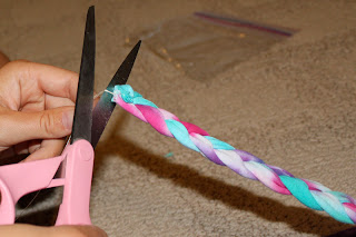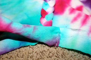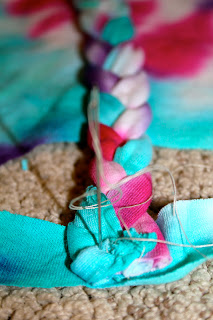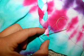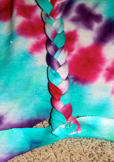 6. Делим этот кусок ткани на три полосы.Натягиваем их немного и заплетаем косу.