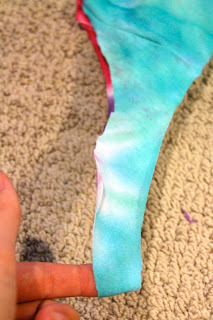 10. используя отрезанный рукав- вырезаем полоску ткани около 1 ½ дюйма в ширину и 4 см в длину, которую надо слегка растянуть.