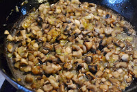 5. В картошку добавить грибы, укроп (у меня был замороженный), перемешать; посолить, поперчить.