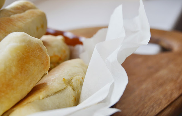 Края подвернуть. Скатать трубочкой и заправить края (как на голубцы); выложить на противень (швом вниз), застеленный пергаментом.
