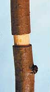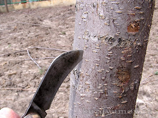 Чтобы этого не произошло необходимо закрашивать оголенный ствол специальной краской — она так и называется КРАСКА ДЛЯ САДОВЫХ ДЕРЕВЬЕВ. Она держится два года — очень удобно. Побелка смывается поэтому неэффективна.