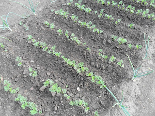 После второго прореживания между рядками обязательнопроделываю мотыжкой канавки глубиной 5-7 см.