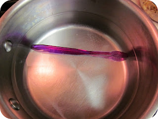 А мы ее еще и сварим. Причем кипятить ее надо не меньше часа, если "не доварить" тогда скорее всего пластик окажется недостаточно гибким и при его сгибании могут возникнуть уродливые белые полосы, ну такие, как растяжки на коже.... Поэтому не будем торопится и часик потерпим