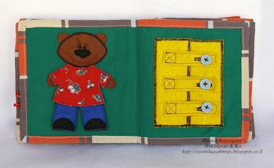 Таким образом, фактически в книжке 20 развивающих страничек. Некоторые из них нам еще откровенно рано читать, но я специально делала книжку с учетом роста сынули. В книжке достаточно мелких деталей, бусин, Конечно же, я все это надежно закрепила, но у маленьких деток часто бывают сила богатырская и зубы острые :-))))), поэтому с этой игрушкой ребенок один не играет.