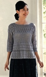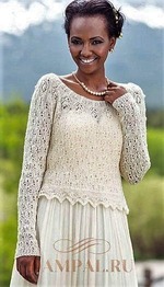 Летний джемпер(реглан сверху) с ажурными вставками в рукавах. Спицы. |