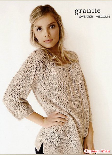 Встретила в инете вот такой пуловер... и решила, что должна связать на сентябрьскую осень из секционной пряжи веселой расцветки.