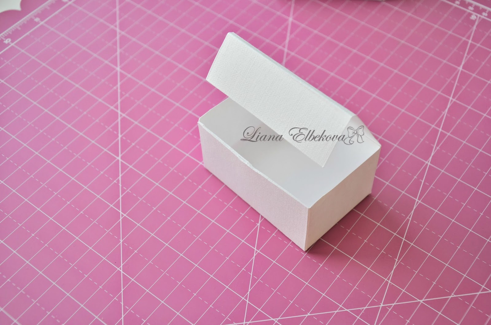 Приклеиваем, клея наносим совсем немного. Чтобы не ошибиться в расстоянии и наша крышка хорошо подошла к коробке, я проверяю так, просто закрыв нашу заготовку:
