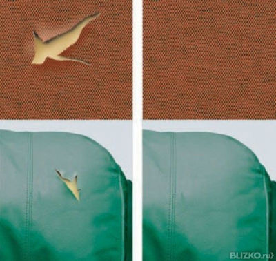 Также можно применить клеевую ткань и утюгом проработать место разрыва. Жидкая кожа наносится с внешней стороны, после чего соединяются противоположные края и поверхность аккуратно разравнивают. Следует дать составу подсохнуть, а также промокнуть губкой поверхность.