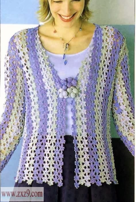 Часть 36 - Элегантный жакетик крючком со вставками из ленточного кружева