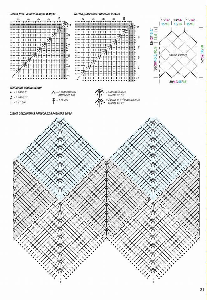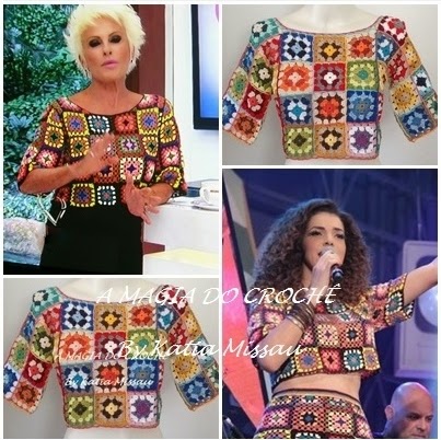 Patrón #1831: Blusa Colorida a CrochetEsquema de grannyMedidasBlusa a Crochethttps://ctejidas.co/patron-10-blusa-con-triangulos-crochet/