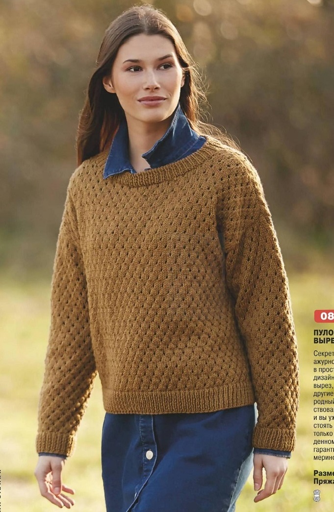 1. Желтый джемпер с ажурной кокеткой.