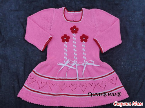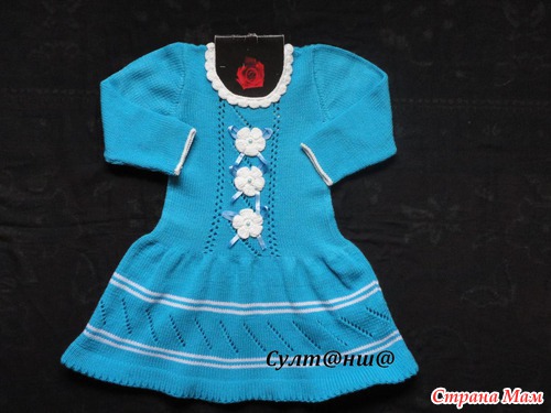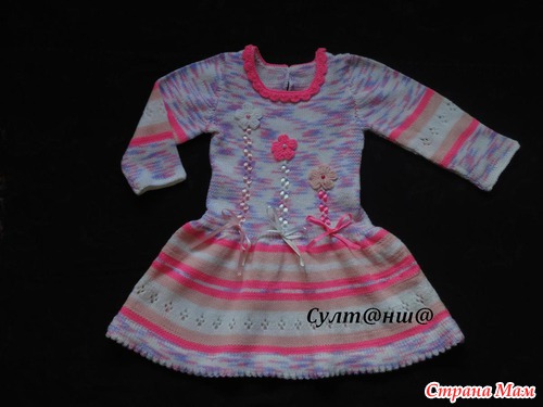 Платья связаны из ниточек "Детская новинка". А пестрое платье связано из "VITA BABY". Связаны платья на машине. Никаких схем нет.
