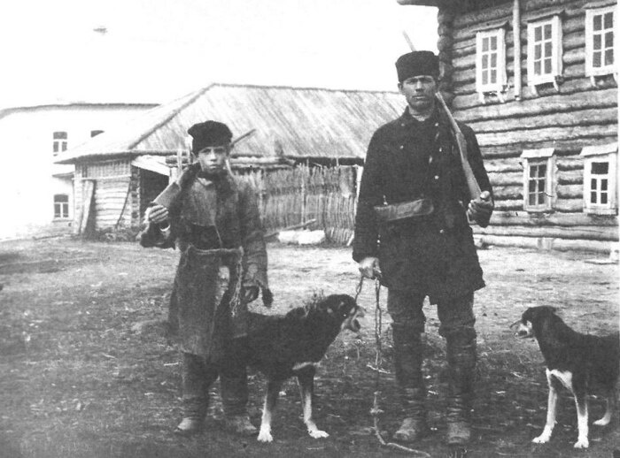 На фото начала 20 века отец с сыном, которые собираются на охоту. Наверняка им пожелали ни пуха./ Фото: https://i01.fotocdn.net/