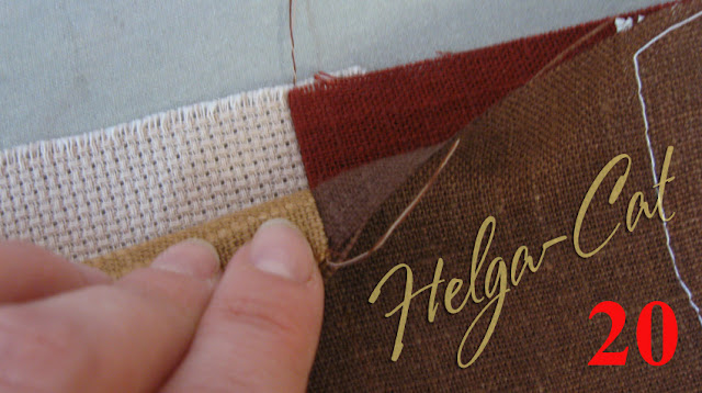 Тут есть ещё вариант – разутюжить все четыре шва на разные стороны, но он хорош для непрозрачных тканей. Я сначала сделала как на фото – два шва взаутюжку, два – вразутюжку. Потом посмотрела – и загладила вишнёвую ткань и канву на коричневые ткани, чтобы канва не светилась насквозь. ))) Посмотрите на ваши ткани и решите сами – как их лучше заутюжить.