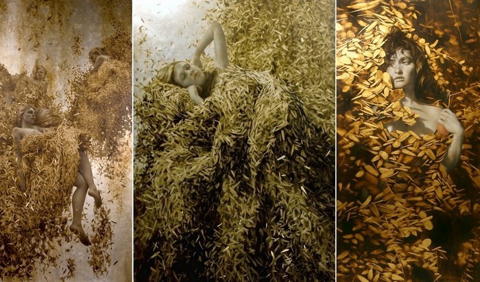 Несмотря на то, что в некоторых работах художника можно заметить точеные мужские фигуры, основную роль в них играют все же женщины. Женщина-муза, женщина-нимфа, женщина-богиня света, цвета и красоты, она всегда окружена волшебством и загадками, поэтому художник так тщательно окутывает своих героинь золотыми осенними листьями. Вероятно, так могла выглядеть и знаменитая Осень, которая танцует вальс-бостон в одноименной песне Александра Розенбаума, если бы была не песней, а картиной. Впрочем, достаточно включить фантазию, проникнуться сказочным настроением романтических портретов Брэда Канкла, как осень тут же закружится в вальсе, разбрасывая вокруг горсти листьев, из которых соткан ее наряд, скрывающий пикантные детали.