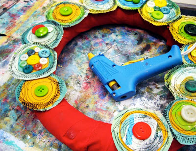 Венок из ткани и пуговиц |