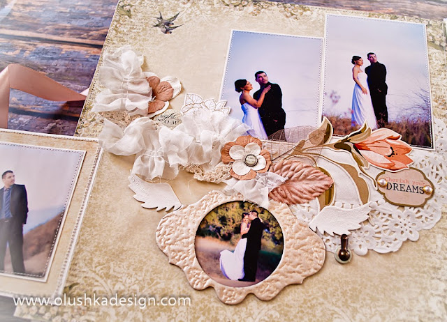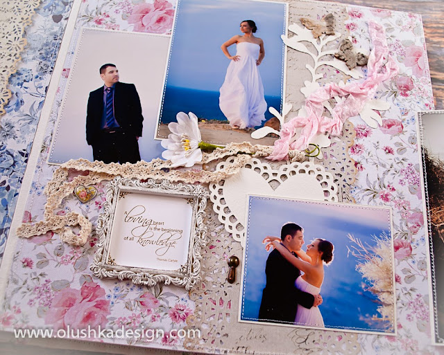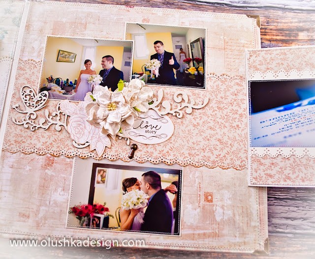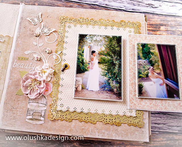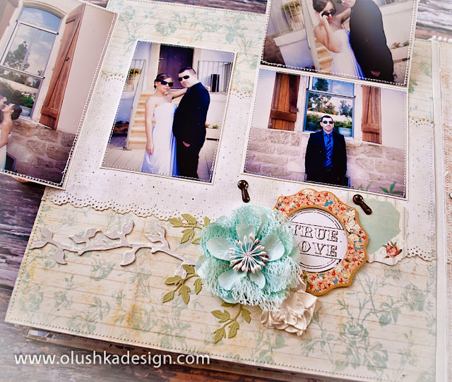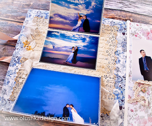 он практически весь из бумаги Maja Design, я прям влюбилось в эту бумажку, под свадебные заказы это идеальный вариант. очень красивые дизайны, и потрясающее качество. правда дороговато выходит, но оно того стоит. я вообще очень люблю плотную бумагу, ее клеить на картон потом одно удовольствие, и от спреев и текстурной пасты тоже не ведет. так что предпочитаю заплатить чуть дороже, но потом работать спокойно и без мата :).