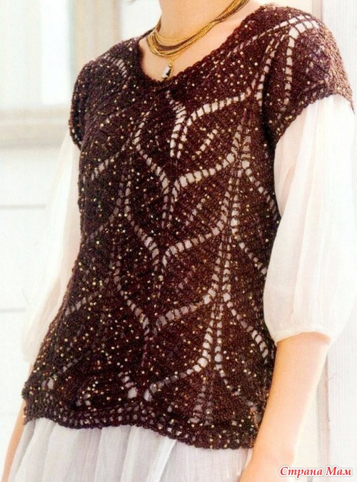 Ажурная безрукавка с растительным узором и вырезом лодочка. Крючок |