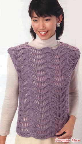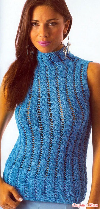 Часть 34 - Вязание спицами. Галерея женских вязаных моделей со схемами и описанием. Жилеты и безрукавки, ч. 2.