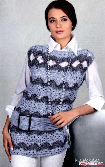 Оригинальная безрукавка связанная крючком вполне разнообразит ваш деловой (и не только) гардероб