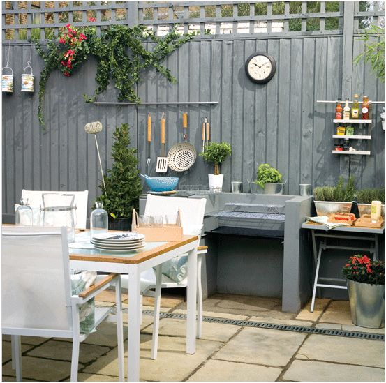 Вот так можно использовать забор или стену сада – выращивать мяту к чаю и тут же мыть клубнику в дуршлаге.