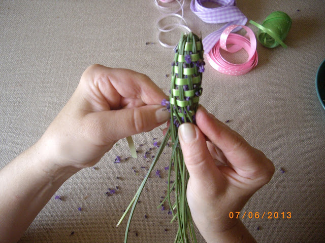 начинаем оплетаем лентой стебли (осторожно не поломать