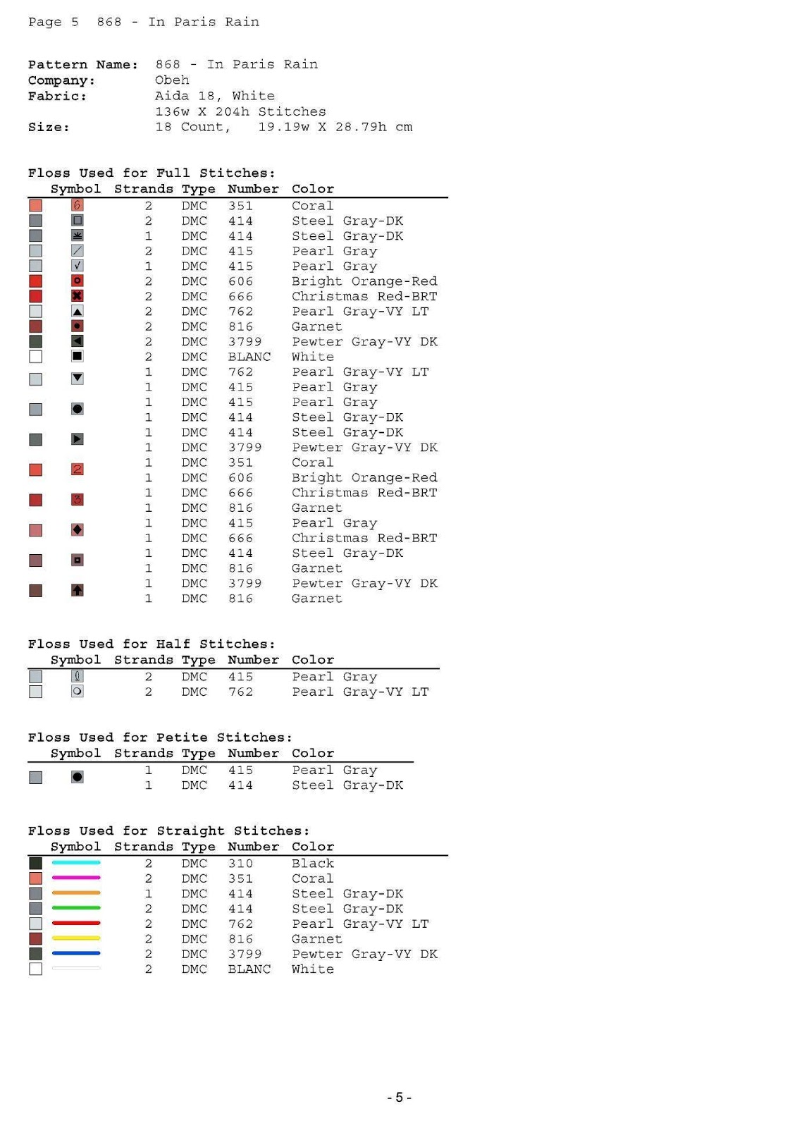 перевод ниток,карта цветов