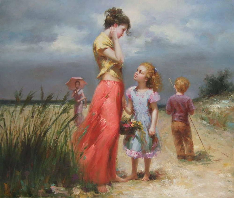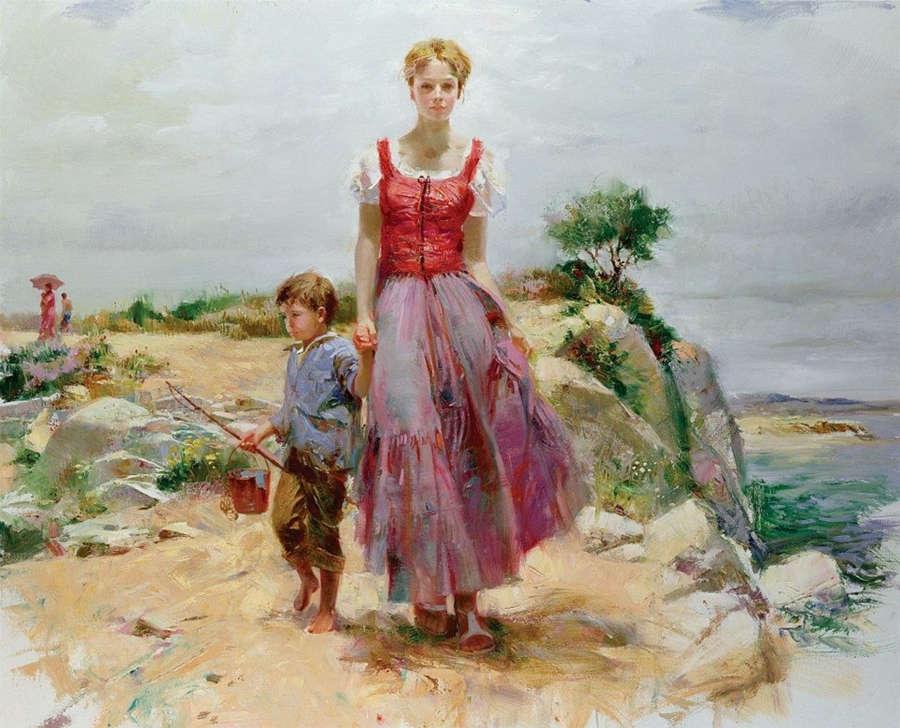 Картины Pino Daeni наполнены теплотой. Написаны солнечным светом, эмоциями, любовью. Уловить движение, выражение глаз своих моделей и передать на полотно, такую задачу ставил перед собой художник. Надо сказать с этой задачей он мастерски справлялся. Pino Daeni родился (1939) в Италии. Детство его проходило на берегу Средиземного моря, такого же солнечного и теплого, как и картины художника.