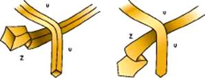 Начальные положения при завязывании галстучного узла - (Л ) и (Л+) в теории Томаса Финка и Юнга Мао. Узкий конец всегда неподвижен.