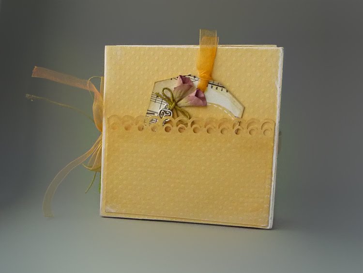 Из небольшого кусочка того же кардстока делаем кармашек для задней стороны рамки. Ширину делаем меньшей, чем ширина заготовки, а будущий верхний край обрабатываем дыроколом. После этого все края тонируем чернилами и приклеиваем кармашек по периметру к заготовке, оставив верхнюю часть свободной. После чего красим все края и сгибы белой акриловой краской.