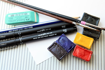 - лайнер, тонкий фломастер или гелевая ручка. Я использовала два черных водостойких лайнера толщиной 0.2 и 0.3 мм. В зависимости от размеров рисунка вы можете использовать и более толстый.