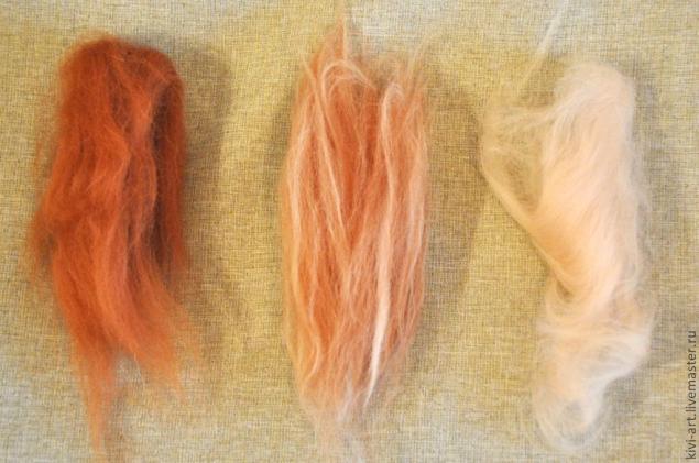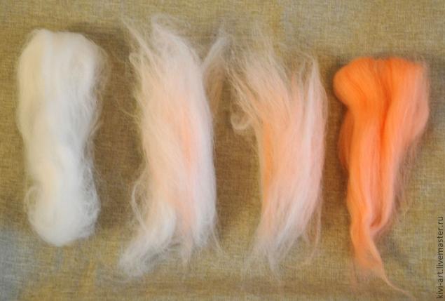 У меня не было большого количества разных оттенков шерсти,поэтому я для начала решила,как на палитре,смешать "краски"))).
