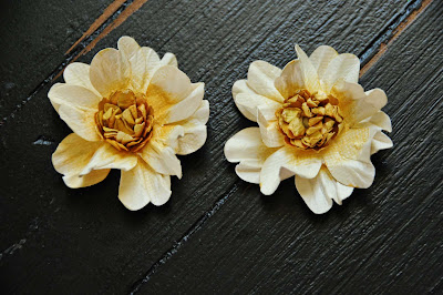 Then spray your smaller flowers on both sides with your choise of color spray. I used Glimmer Mist in 2 colors.