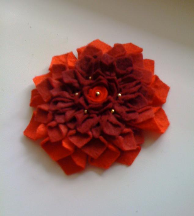 Если у вас нет опыта в валянии вы можете сделать себе например брошь из фтра-георгин, по такому же типу получается вот так