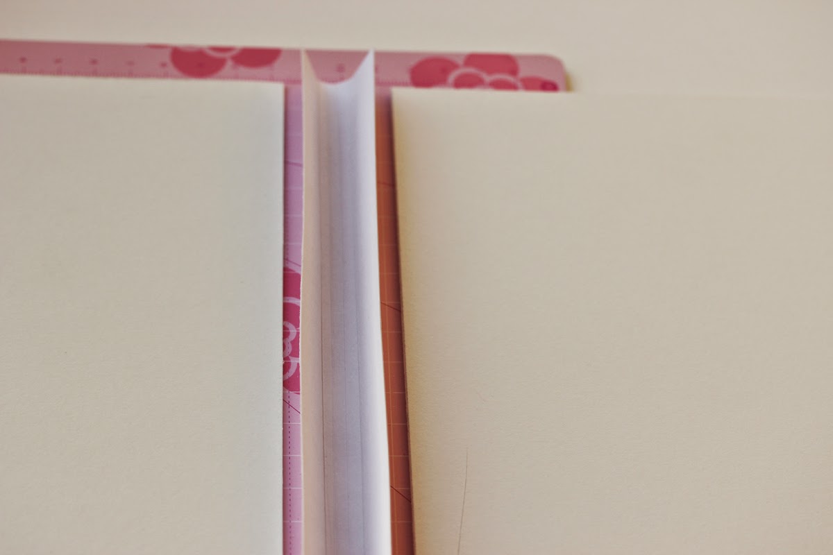 Следим за тем, чтобы края всех трех деталей лежали на одной прямой, иначе папочка может получиться неровной: