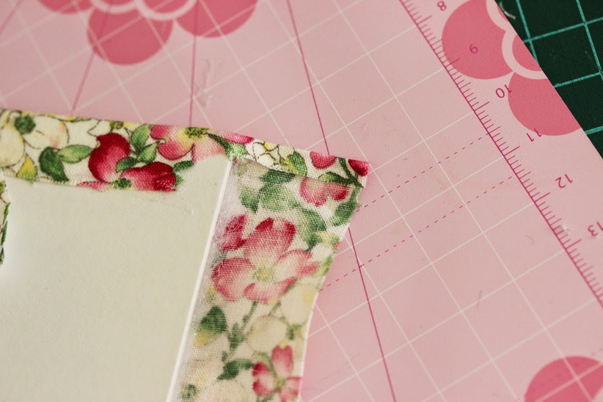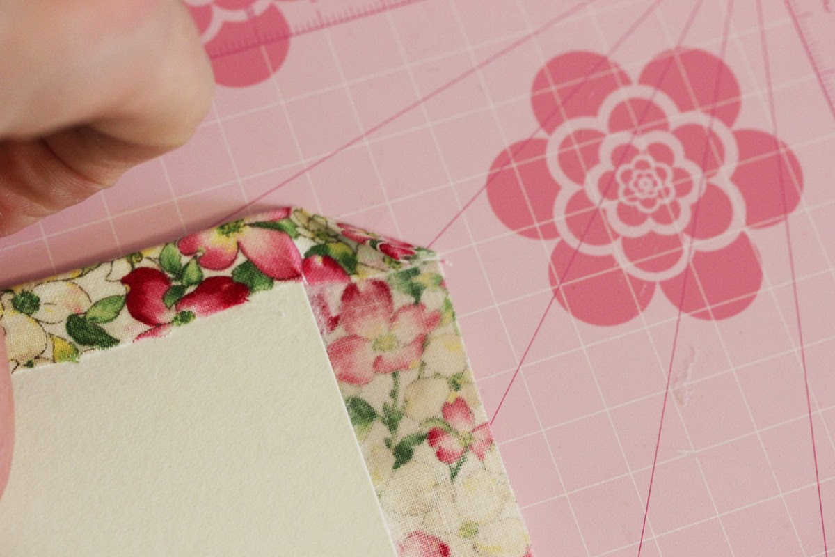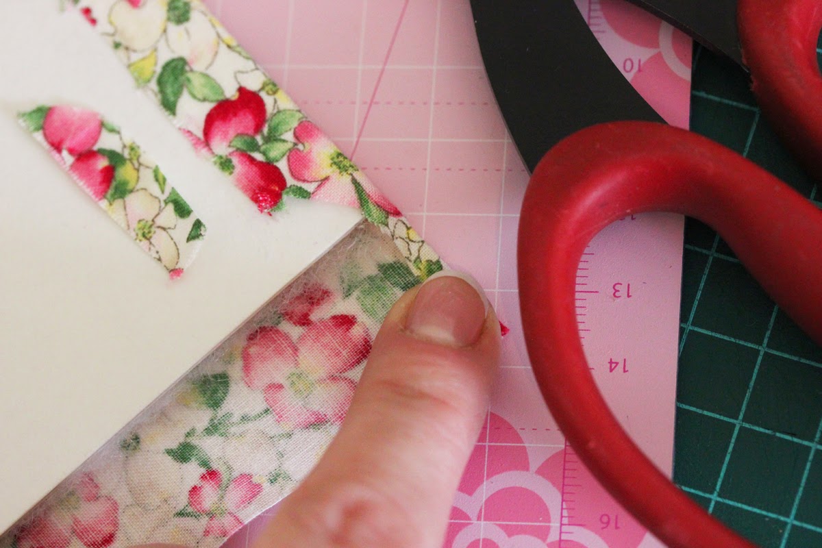 Приклеиваем ткань к картону, начиная с серединки (корешка), тщательно прижимая пальчиками. Клей сохнет очень быстро, поэтому работаем не отвлекаясь: