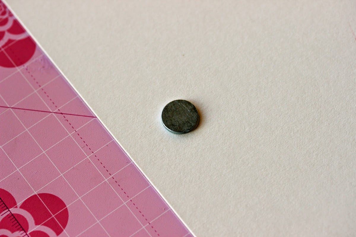 7. Пара тонких круглых магнитов (у меня толщиной 1 мм). Свои папочки я делаю на встроенной магнитной застежке, такая представляется мне наиболее удобной в эксплуатации: магнит надежно удерживает створки папочки от случайного раскрывания, а документ - от сминания, а при необходимости быстро открыть папку не создает никаких преград. К тому же он прикольно клацает при закрывании ) Вообще, конечно, можно делать любую другую застежку - на лентах, на резинке, на хлястике с пуговкой или липучкой, а можно и вообще без застежки - хуже от этого папочка не станет.