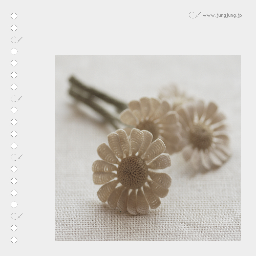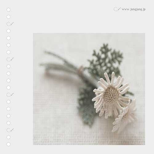 Японская вязальщица Jung Jung представляет свою новую коллекцию: полевые цветы и не только. Ромашки, одуванчик, клевер или даже пучок стеблей сельдерея — все реализовано необычайно тонко и умело. Так и хочется сказать: это — настоящее мастерство.