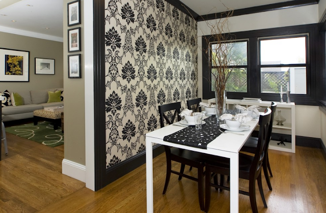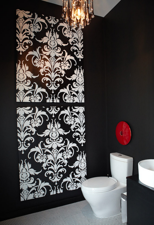 Чаще всего дамасский узор можно встретить на обоях. Дамаск настолько силен по энергетике, что его лучше не использовать на всех стенах помещения, а оклеить лишь одну в качестве акцента или даже небольшой участок. Также можно встретить дамасский рисунок на шторах, подушках, светильниках, постельном белье, мебельной обивке, плитке.