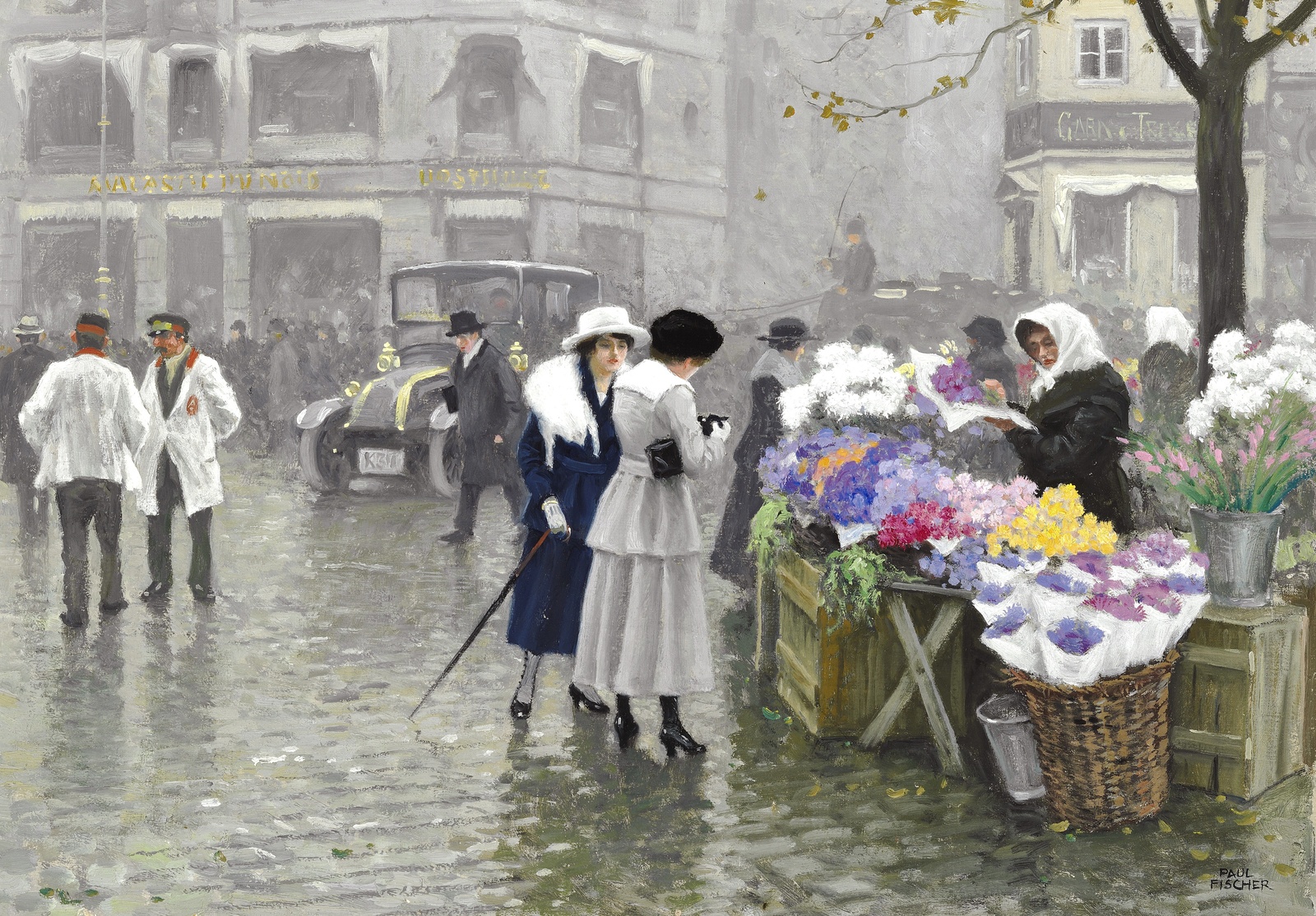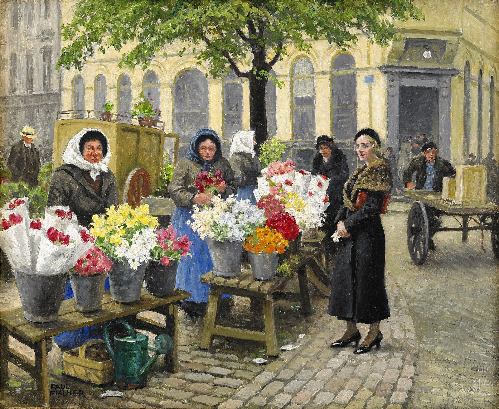 (Elegant ladies buying flowers at Hojbro Plads in Copenhagen)_39 55_.,._