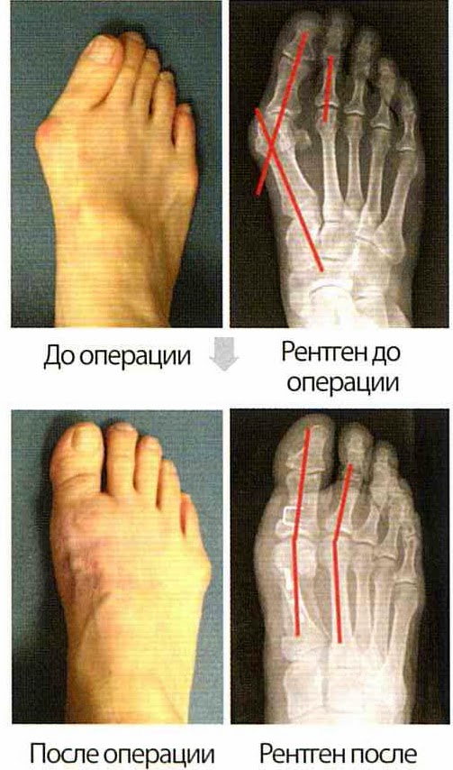 Методика применяемая нами радикальна, в основе ее лежит устранение "ключа" этой многокомпонентной деформации - медиализации 1-й плюсневой кости.
