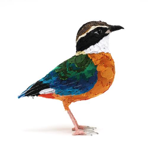 Мне очень понравилось работать над птицей, а её качество было таковым, какого я не могла достичь, работая над другими животными. Спустя некоторое время я обнаружила, что люди стали расхватывать таких птиц, так вот всё это и началось». Невозможно не влюбиться в ярких и причудливых птиц Абигейл, с их поднятыми клювами и длинными ногами. В каждую из них вложено огромное количество труда и вдохновения, от изначальной идеи, почерпнутой из коллекции детских книг, и выбора цвета и фактуры тканей до отрисовки формы и сшивания деталей. «По большей части я работаю с натуральными тканями, поскольку мне больше нравится их вид, по сравнению с синтетикой, - говорит Абигейл. - Они более мягкие и естественные, к тому же, я думаю, лучше подходят для работы с птицами. Все детали сшиты вручную мелкими стежками. Для того чтобы изготовить одну птицу, уходит от трёх до одиннадцати часов непрерывной работы, однако я слишком неугомонна, чтобы сидеть столько времени напролёт!» В детстве Абигейл была окружена творческими людьми (её бабушка была швеёй), так что неудивительно, что Абигейл с лёгкостью приняла решение стать профессиональным художником по текстилю. Она переняла мастерство и любовь к вышивке от людей вокруг, а после того, как сдала экзамен по текстилю и поступила в колледж искусств, уже знала, в чём её призвание. «Я должна поблагодарить свою соседку по комнате в университете за то, что она познакомила меня с текстильным искусством, - рассказывает она. – До встречи с ней я и не подозревала о существовании такого мира!» Сейчас у Абигейл свой интернет-магазин на Etsy, где она продаёт своих птиц, животных и других созданий.
